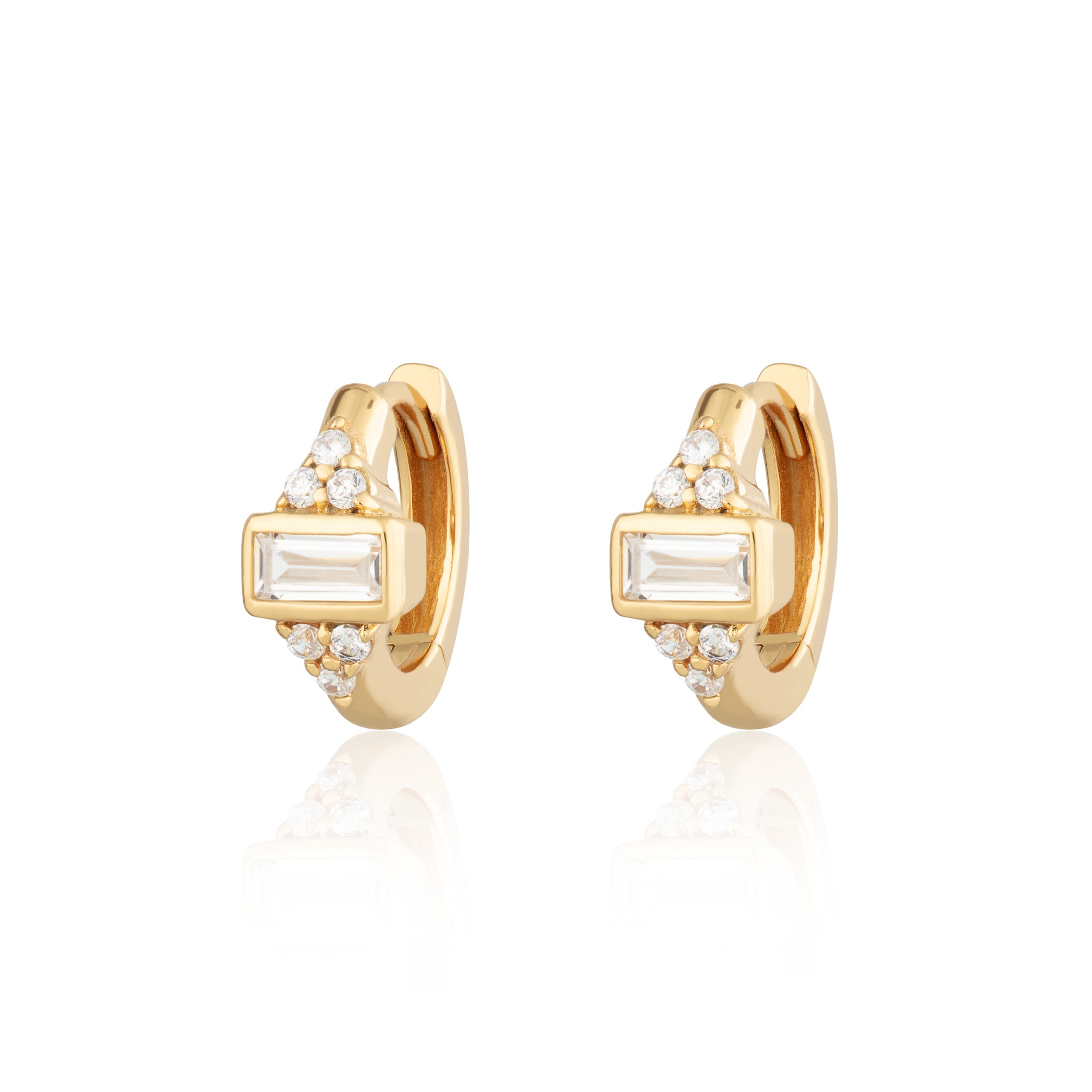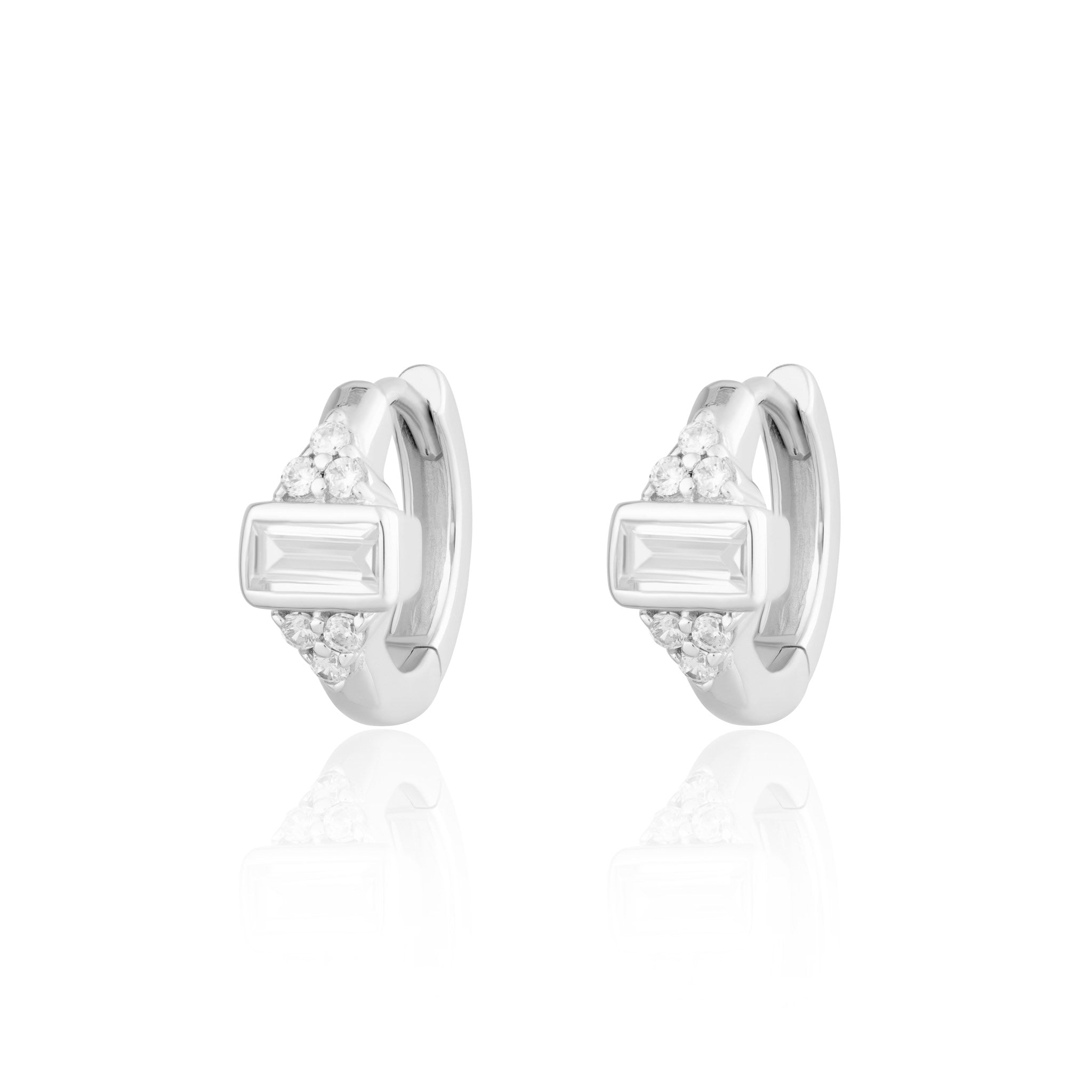 Inspired by timeless elegance of Audrey Hepburn in Breakfast at Tiffany’s, this single huggie hoop, crafted from sterling silver, features a dazzling mix of clear baguette cut and nano cubic zirconia stones.