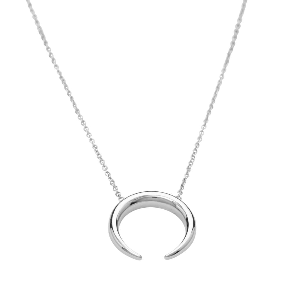 Diese halbmondförmige Hornkette ist ein modernes Schmuckstück, das für einen minimalistischen und dennoch stilvollen Look entworfen wurde und auf jede beliebige Länge eingestellt werden kann