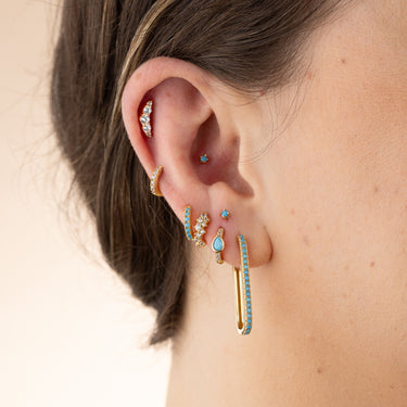 Perfetto accessorio estivo, luminoso e spensierato. Turquoise Stone Huggie e Tiny Stud Set di orecchini sono anche la pietra portafortuna dei bambini di dicembre!