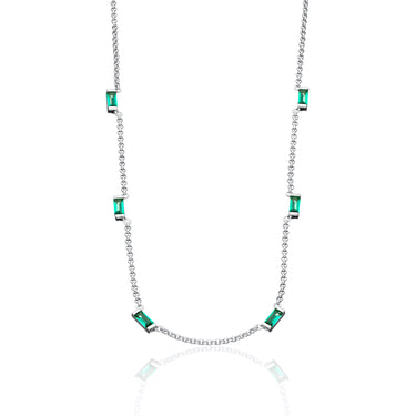 Elevate your look with this Cleopatra Green baguette chain necklace with art deco styling and radiant emerald, green hues!