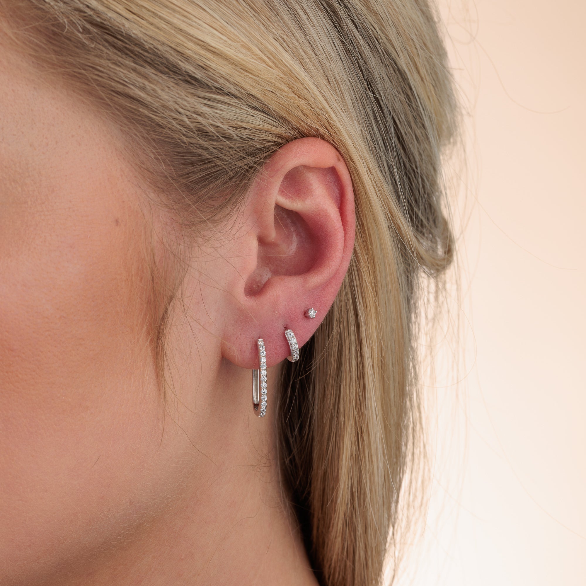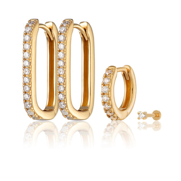 Your dream ear stack starts right here! This oval clear stone earring set is a jewellery box must-have. Featuring a pair of classic oval hoops, a single huggie earring and a single flat back all studded with clear cubic zirconia stones for endless styling potential. Whether you're stacking across multiple piercings or wearing them solo, this earring set has all of your everyday go-to essentials. Available in silver or gold, the timeless design of this earring set makes them perfect for mixing, matching, and layering.